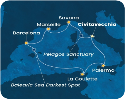08:00 시칠리섬의 팔레르모 기항. 하선 후 가이드 미팅 [ 팔레르모 순례 ] - 시칠리의 보물 몬레알레 대성당 - 12세기 부터 600여년간 간축된 노르만 왕들의 묘가 있는 팔레르모 대성당 항구로 귀환 후 크루즈 재승선 16:00 팔레르모 출항 |
