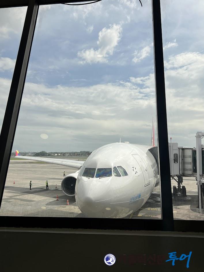 교통 : 아시아나항공, 현지 50인승 대형 버스